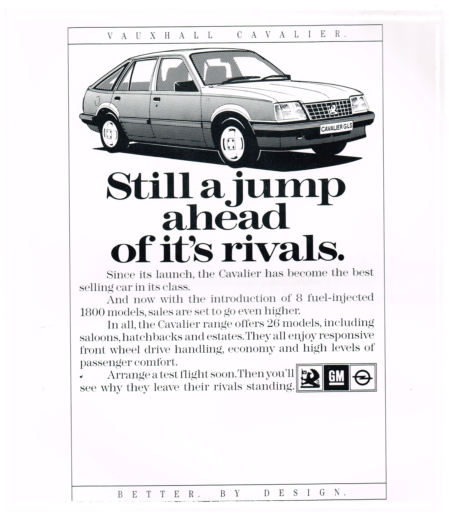 Launch in 1981, the Cavalier Mk2 was a jump ahead of its rivals. With the addition of 8 fuel-injected 1800 models in 1985 sales took off further.